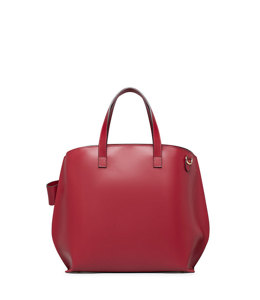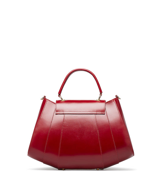 Red leather handbag