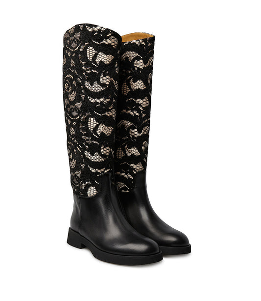 Black lace and calfskin boots