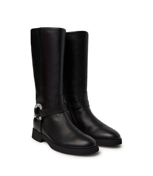 Black nappa leather jewel buckled boot