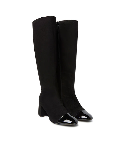 Patent leather detailed black suede boot