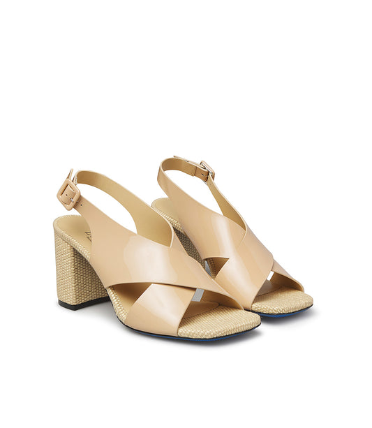 Sandalo in vernice e rafia beige naturale