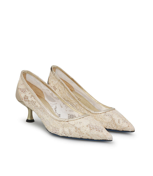 Décolleté in pizzo e vernice platino