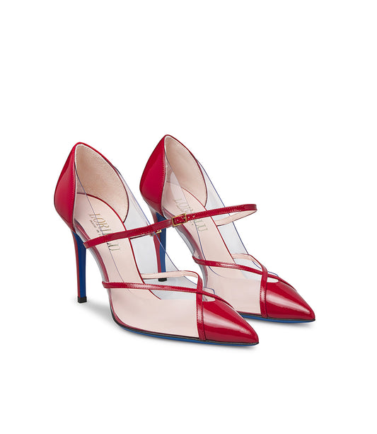 Slingback in vernice crema e plexi