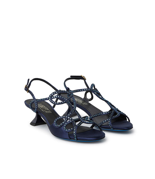Crystals embellished blue satin jewel sandal