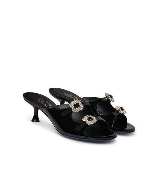 jewel buckle embellished black leather mules