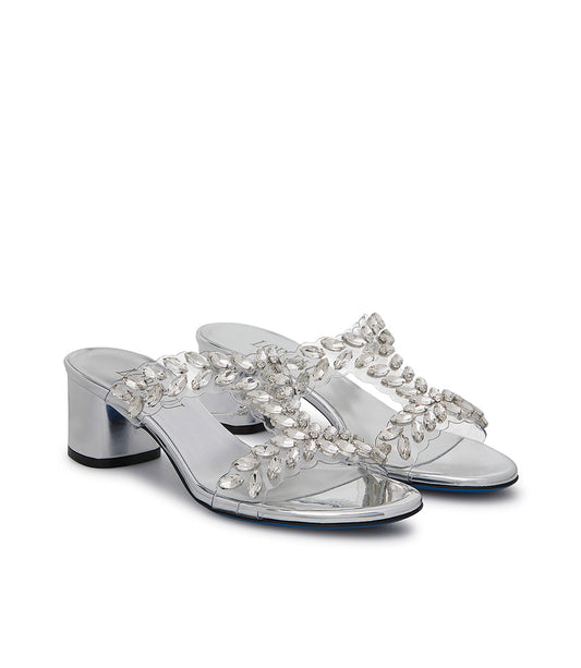Set rhinestones silver leather and plexi mules
