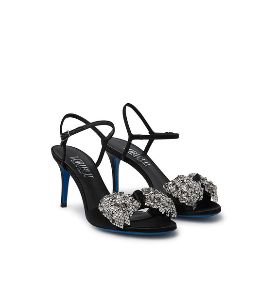 micro studded bow black satin sandal