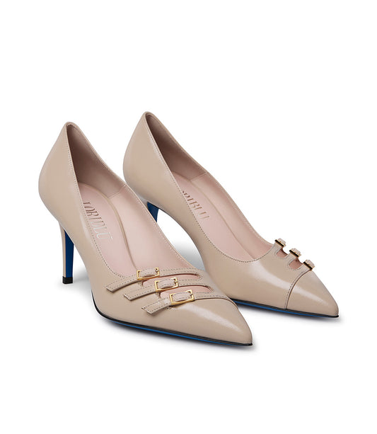 Decorative straps sand leather pumps