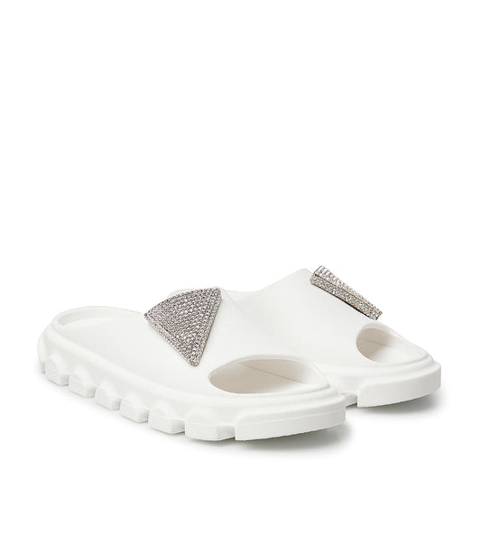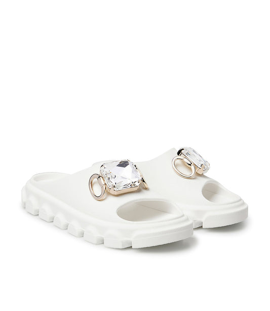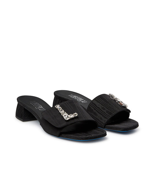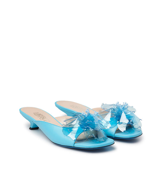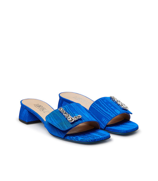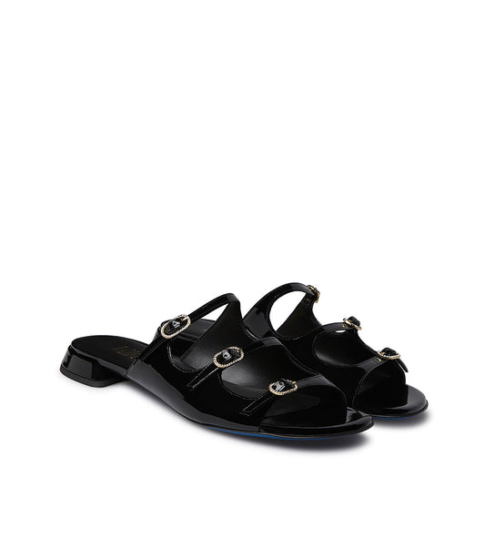 Mules in pelle lucida color rosa petalo con fibbie gioiello