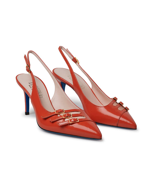 Decorative straps cayenne red leather slingback pumps