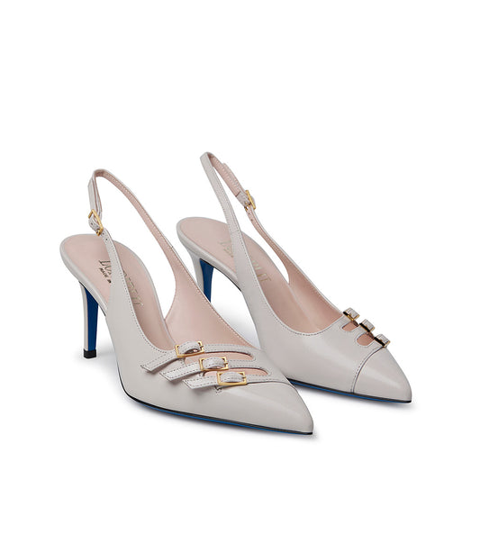 Decorative straps sand leather slingback pumps