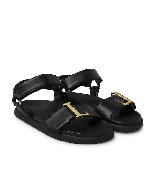 Flat black nappa leather sandals