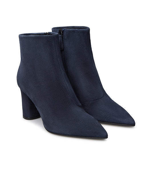 Stivaletto alla caviglia in camoscio nero con tacco in metallo oro