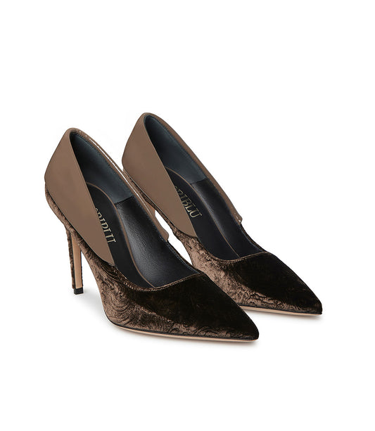 Décolleté in velluto rosso rubino con cinturino gioiello