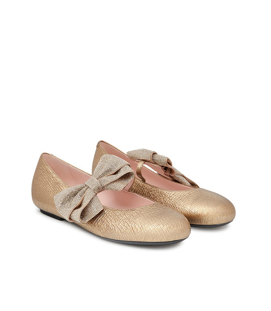 Ballerine in pelle oro con fiocco