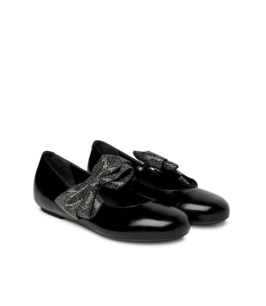 Ballerine in pelle nera lucida con fiocco