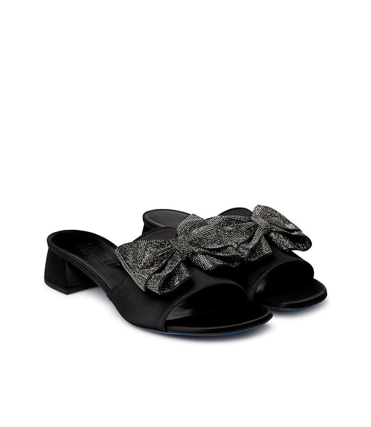 Mule in raso nero con fiocco