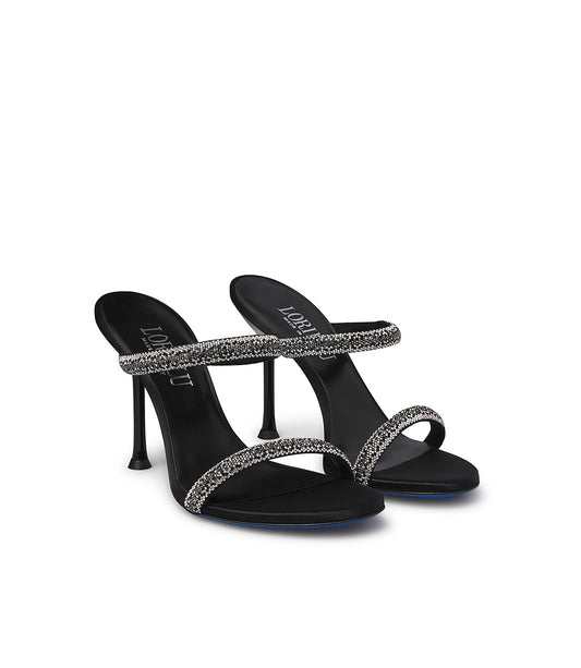 Sandali in raso nero con strass
