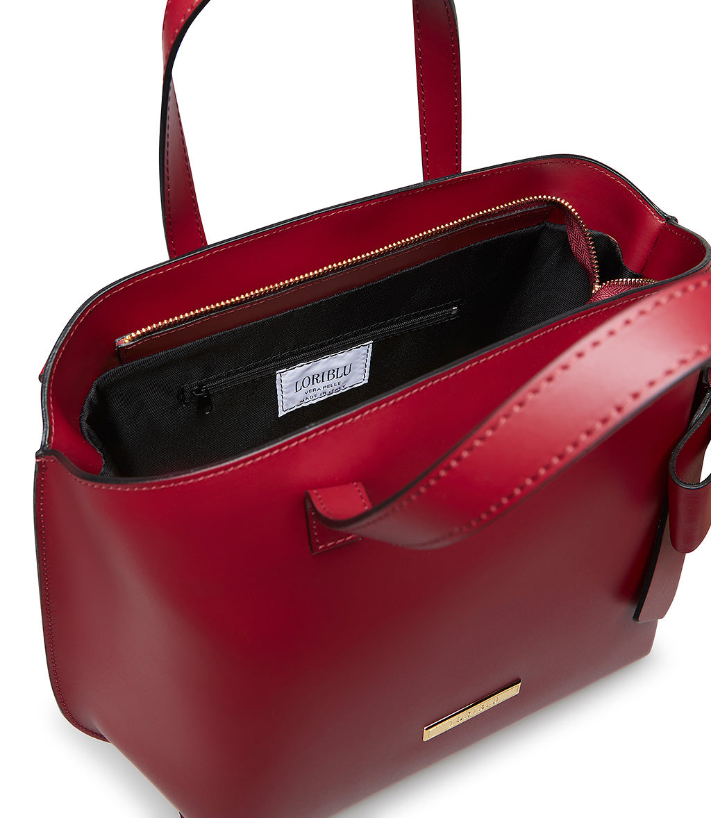 Borsa a mano con fiocco in pelle rosso