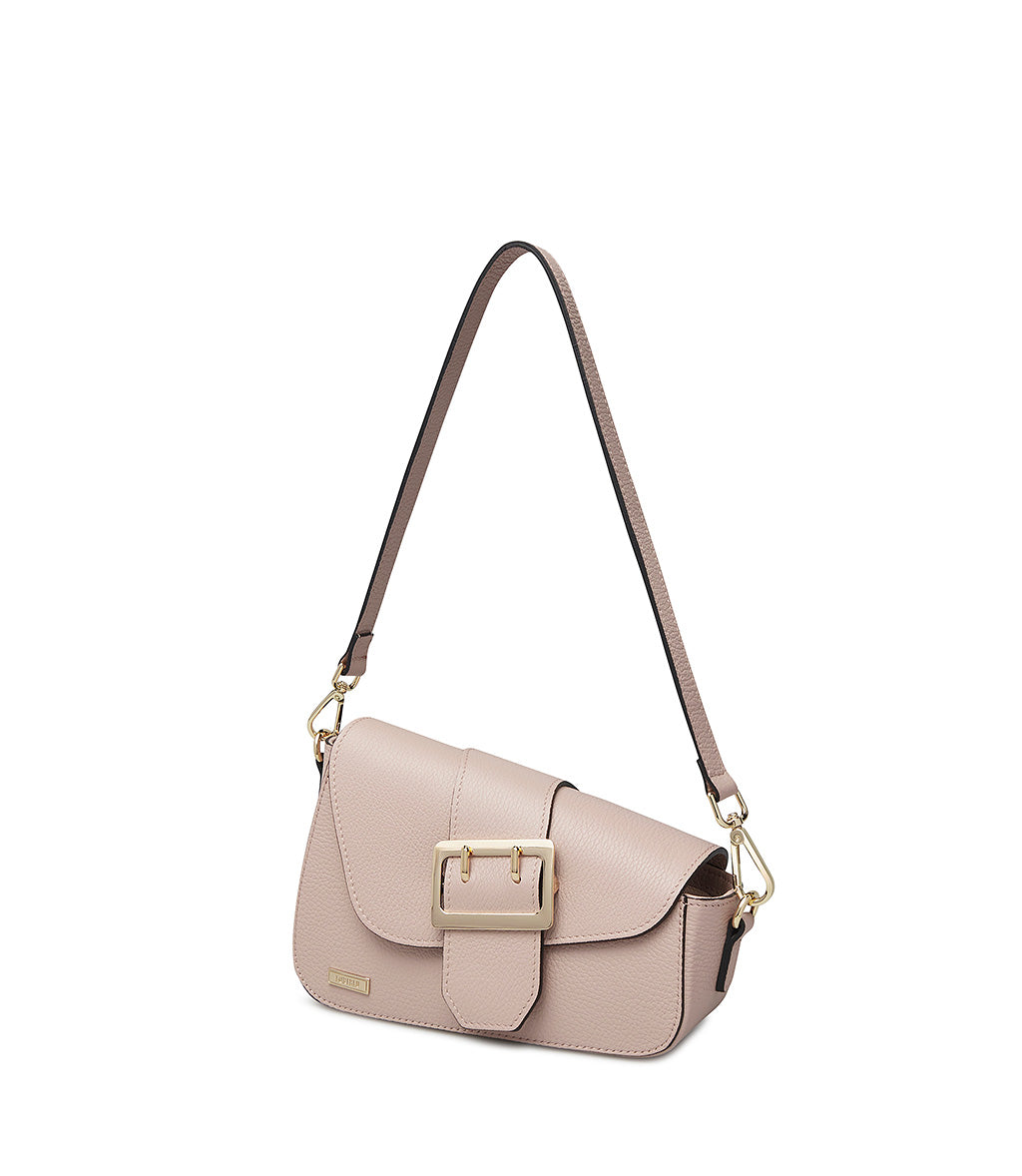 Borsa a spalla in pelle granulato cipria