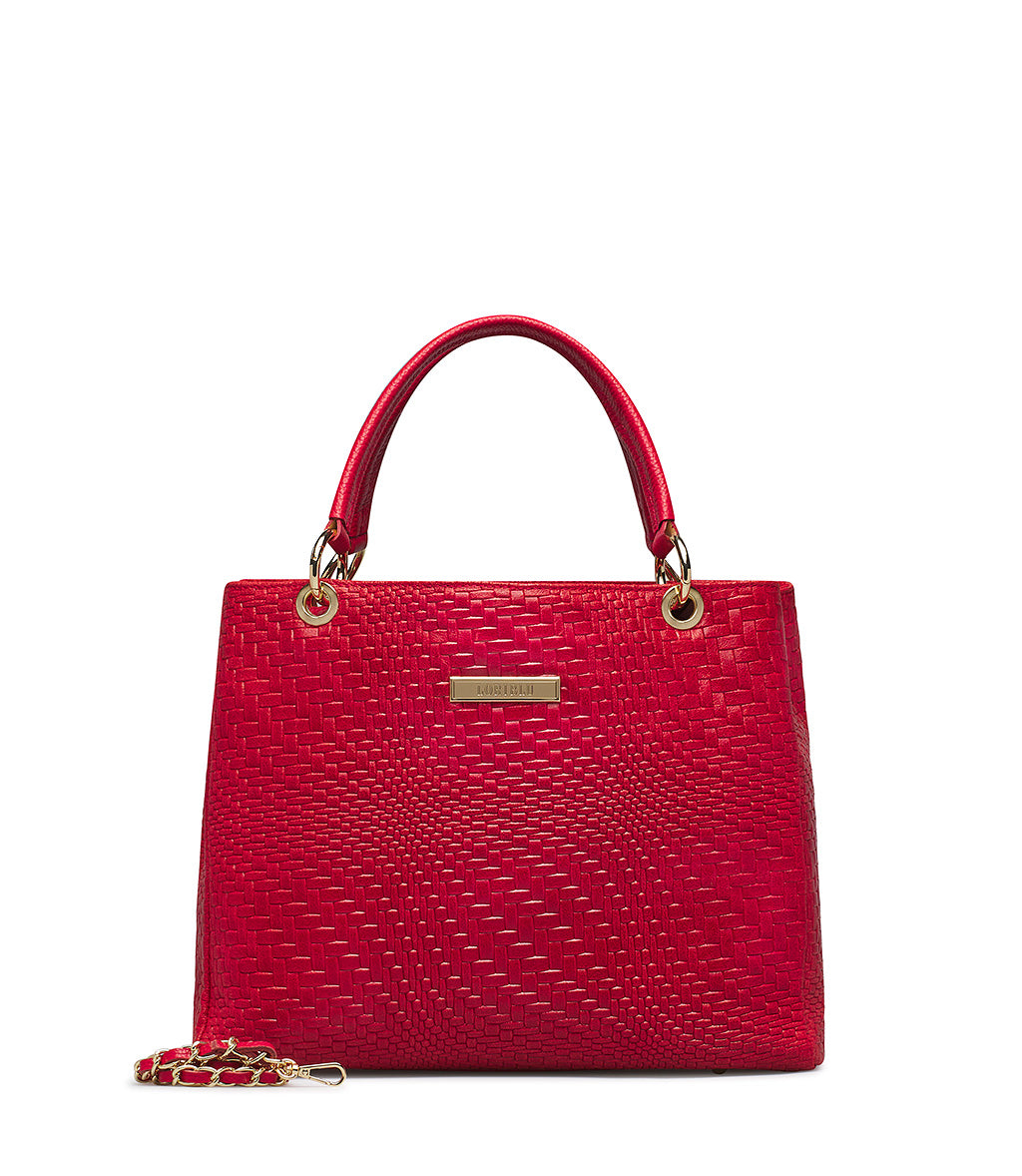 Borsa tote in rafia intrecciata rosso