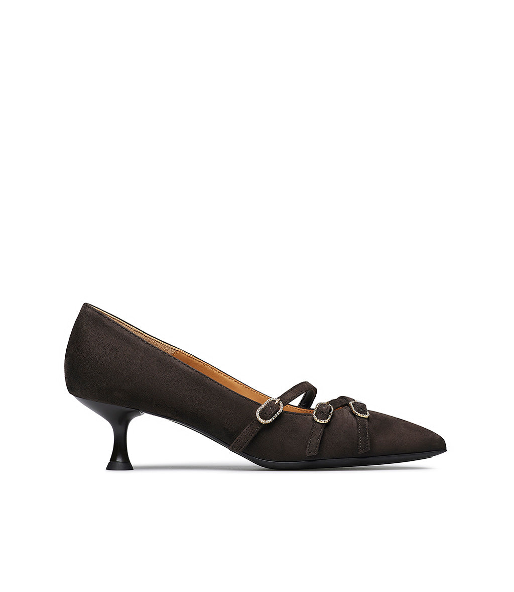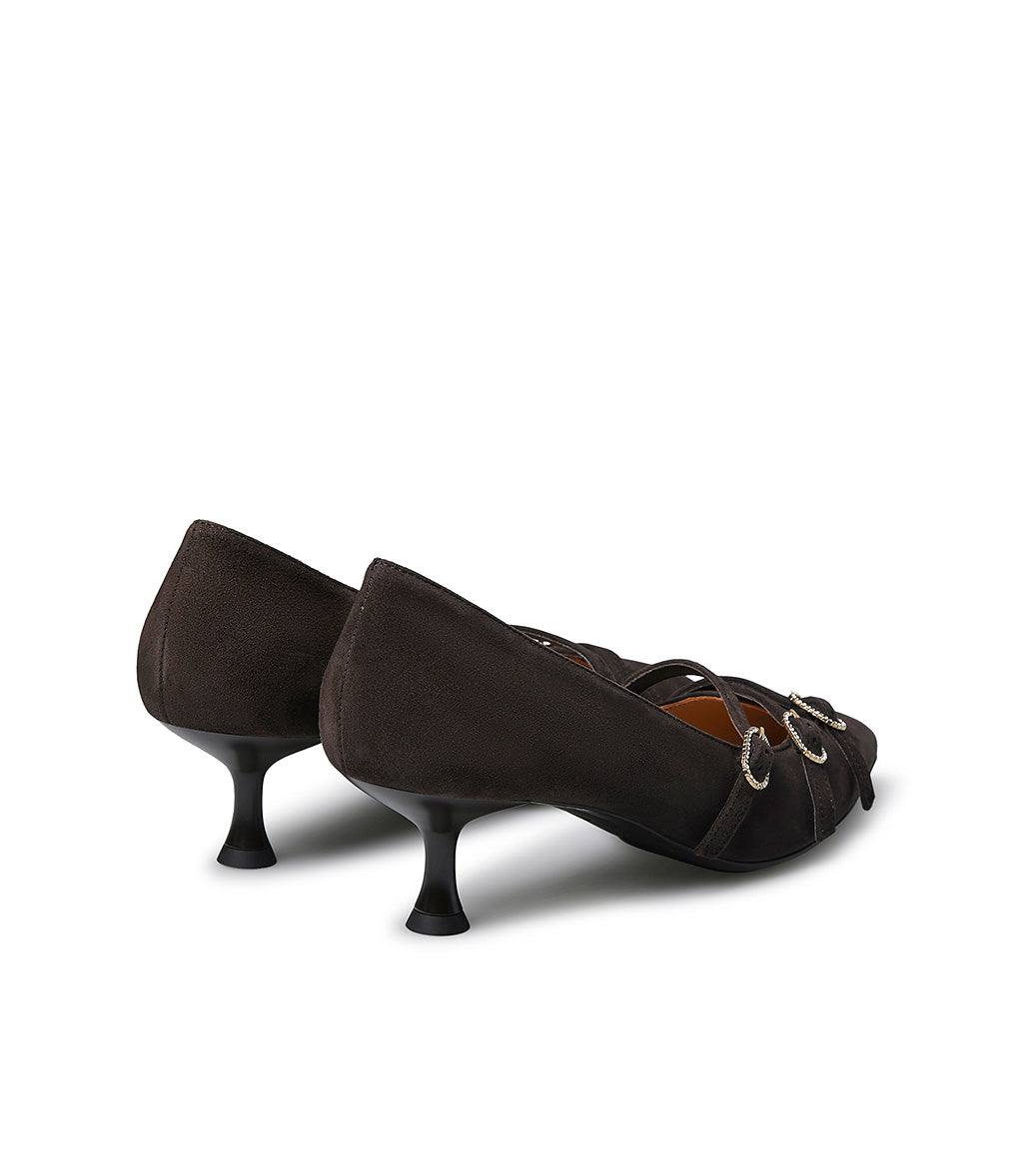 Décolleté in camoscio moro con ciunturini