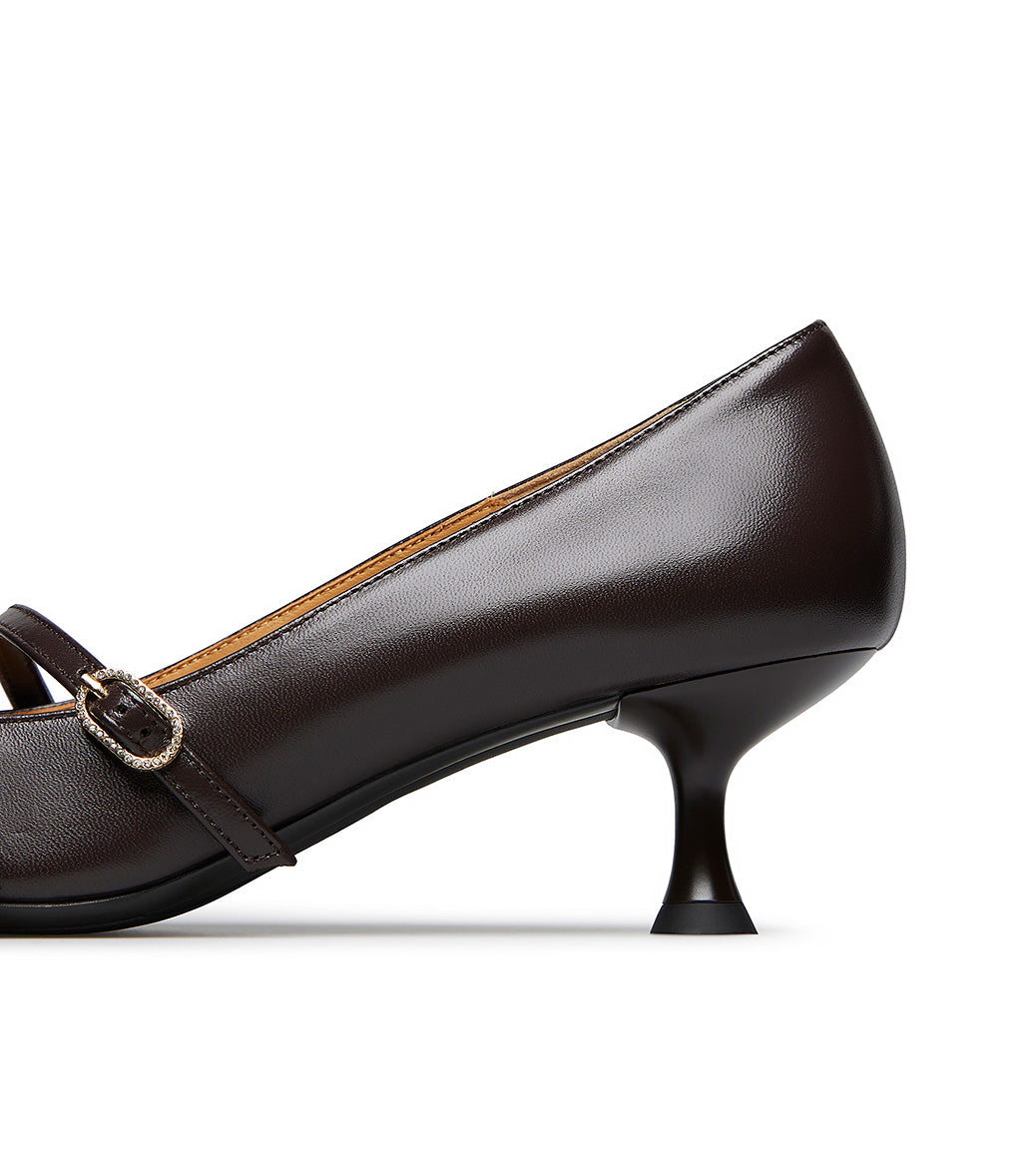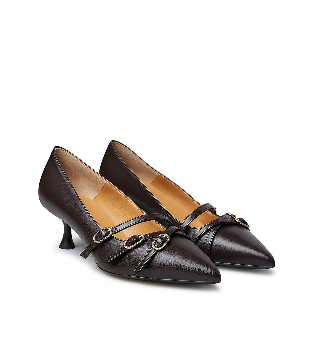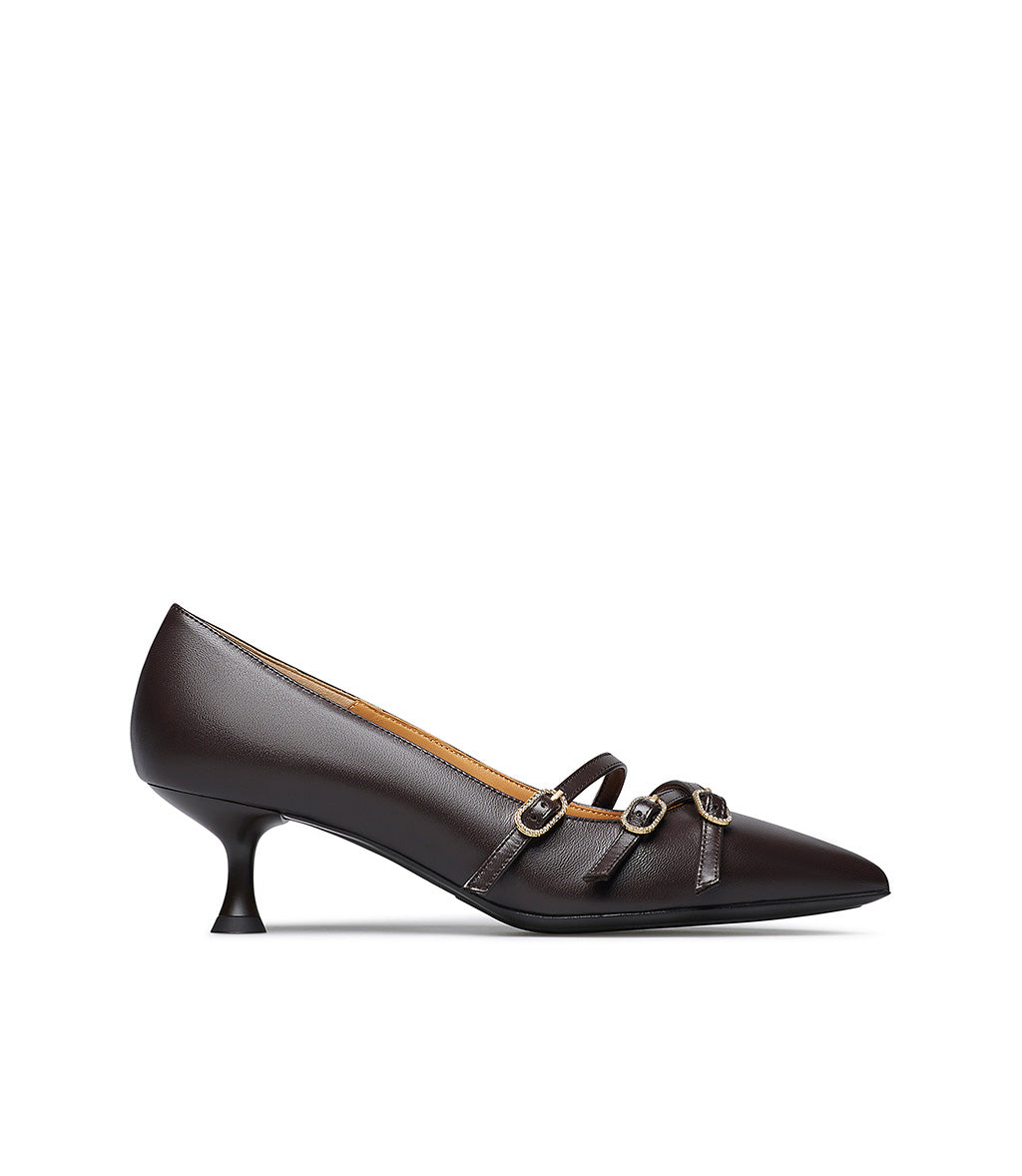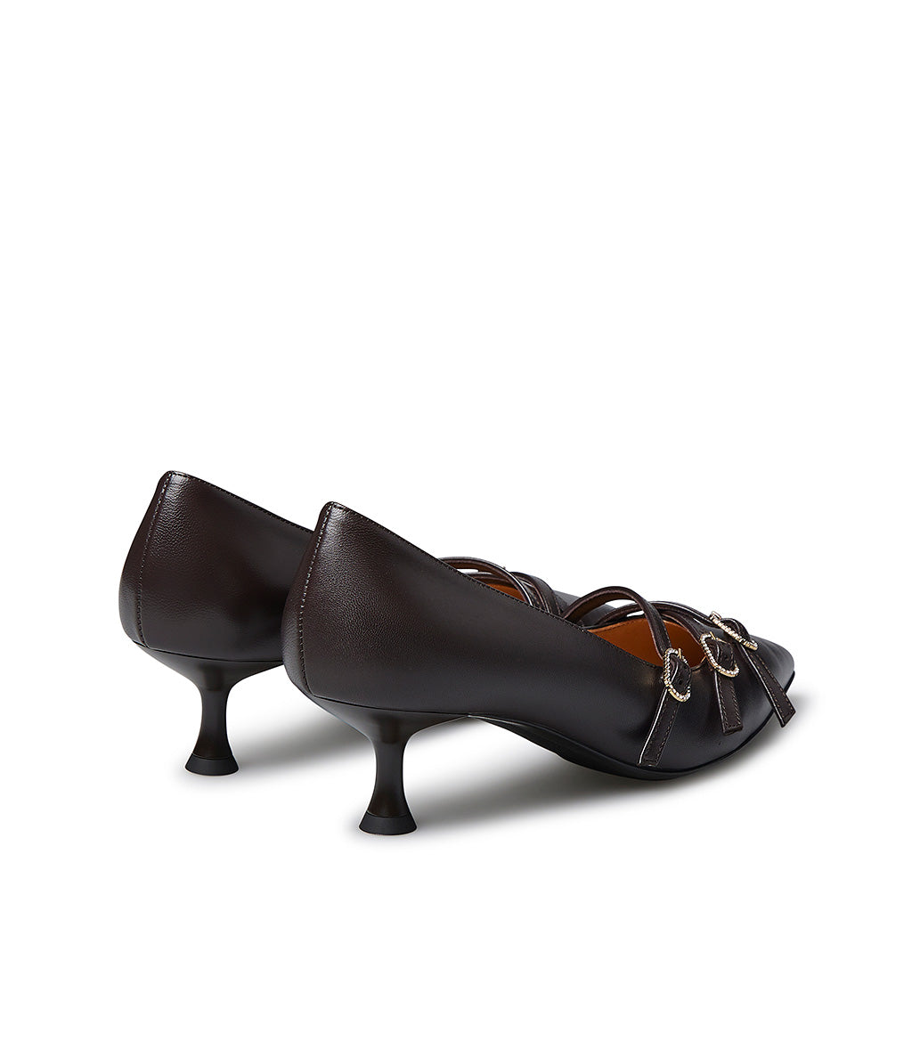 Décolleté in nappa color moro con ciunturini