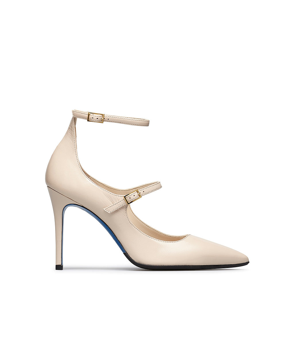 Décolleté in pelle lucida sabbia con cinturini
