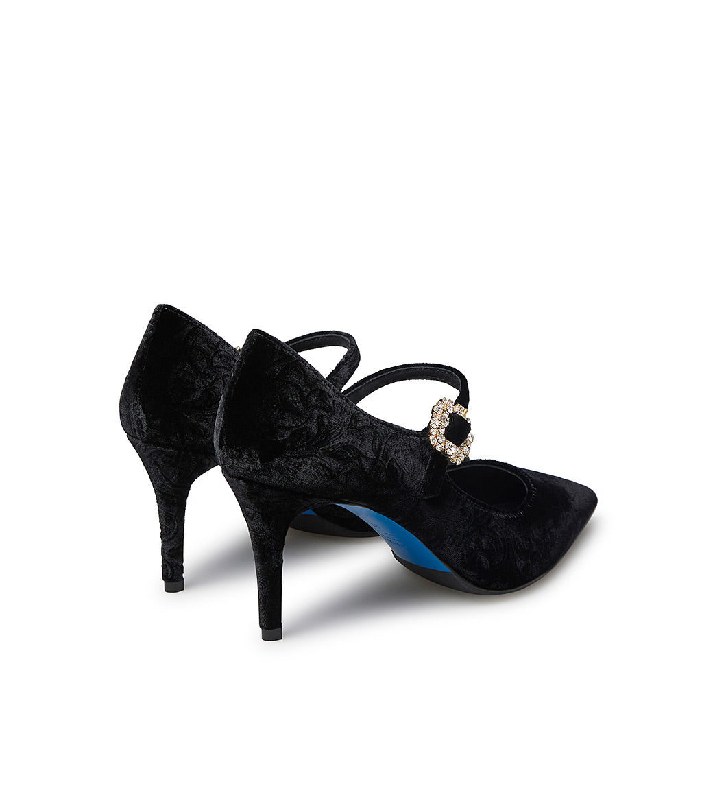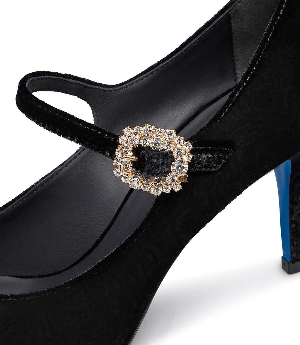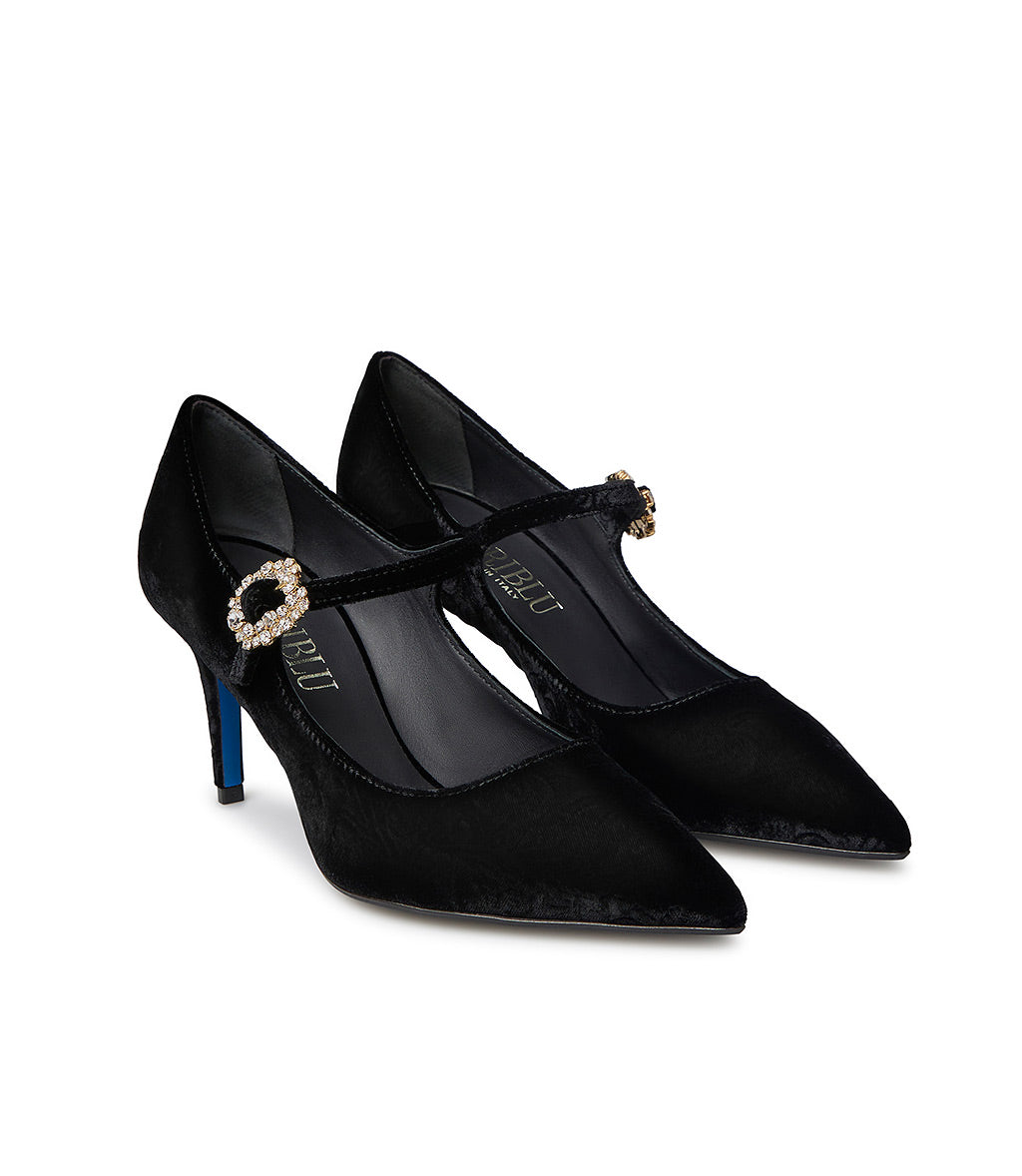 Décolleté in velluto rosso con cinturino e fibbia gioiello