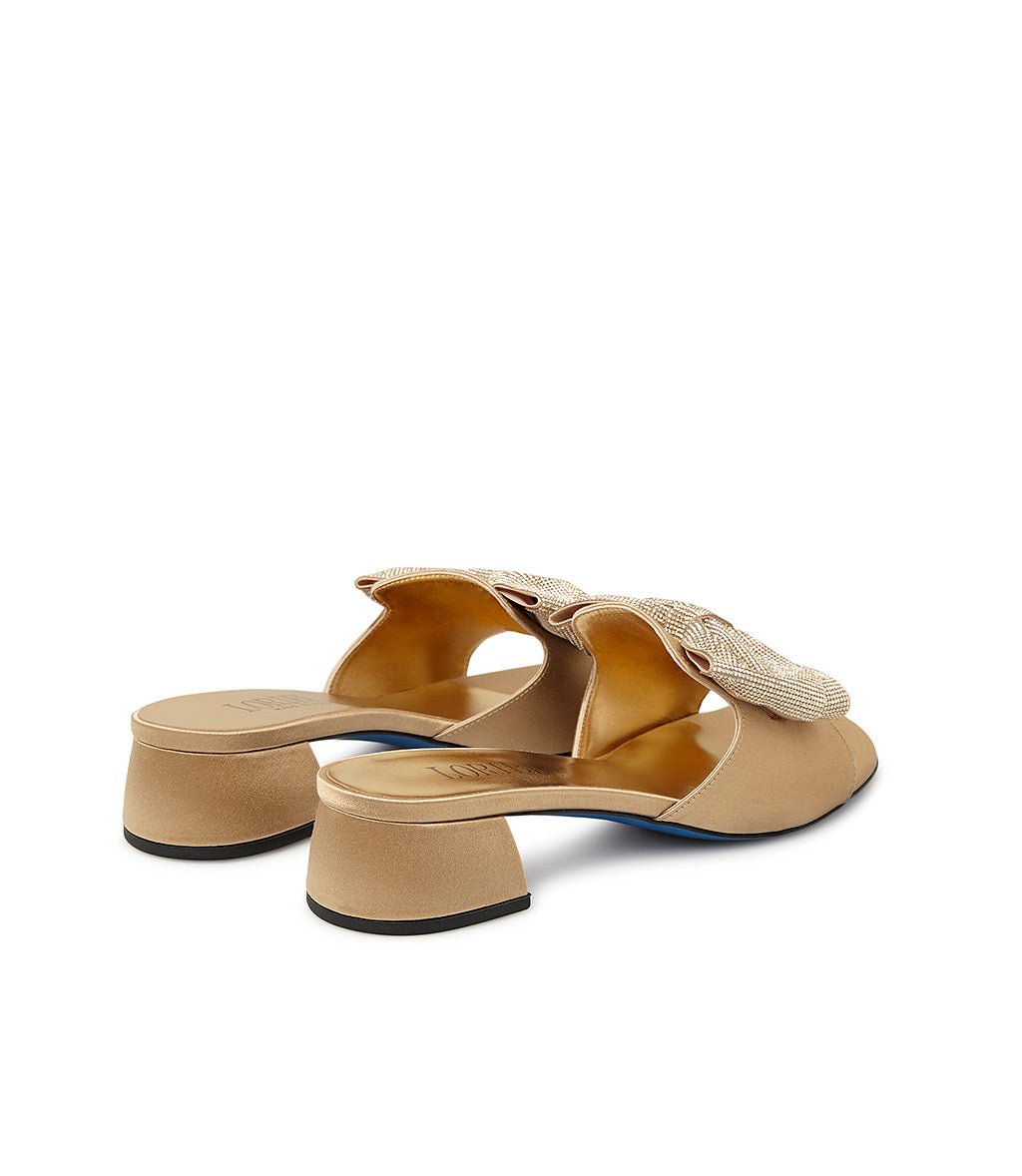 Mule in raso oro con fiocco