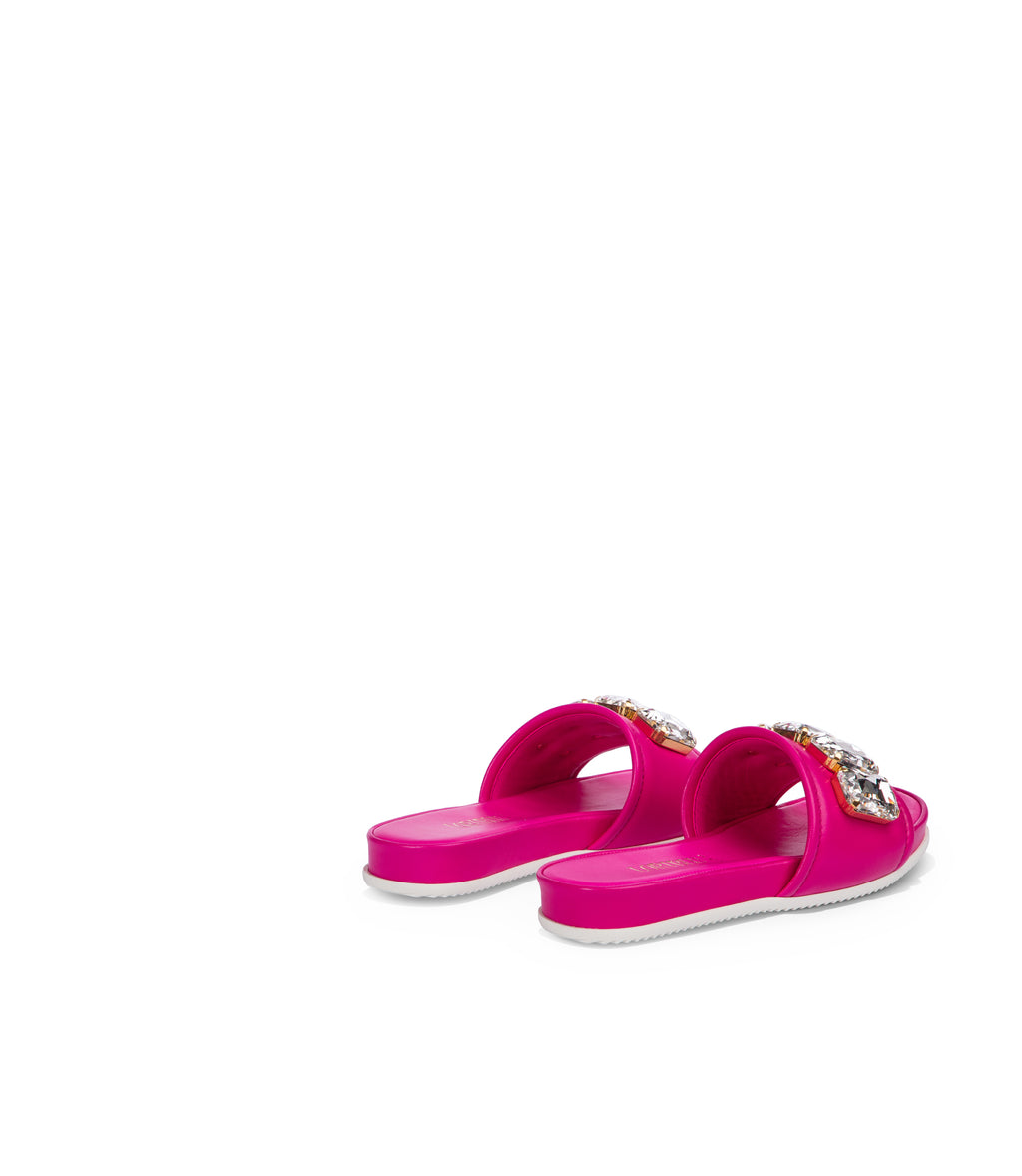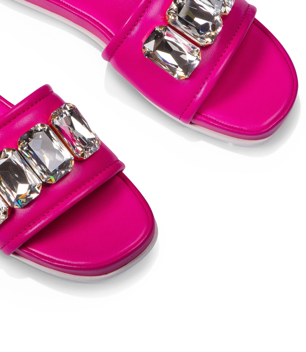 Sandali flat in nappa fucsia con cristalli