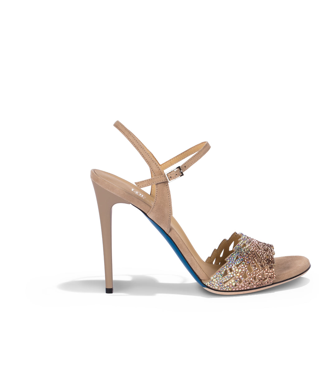 Sandali in camoscio laser-cut nude con cristalli decorativi