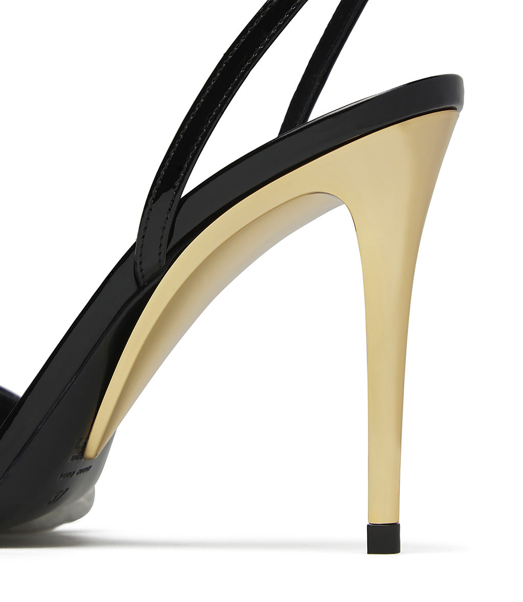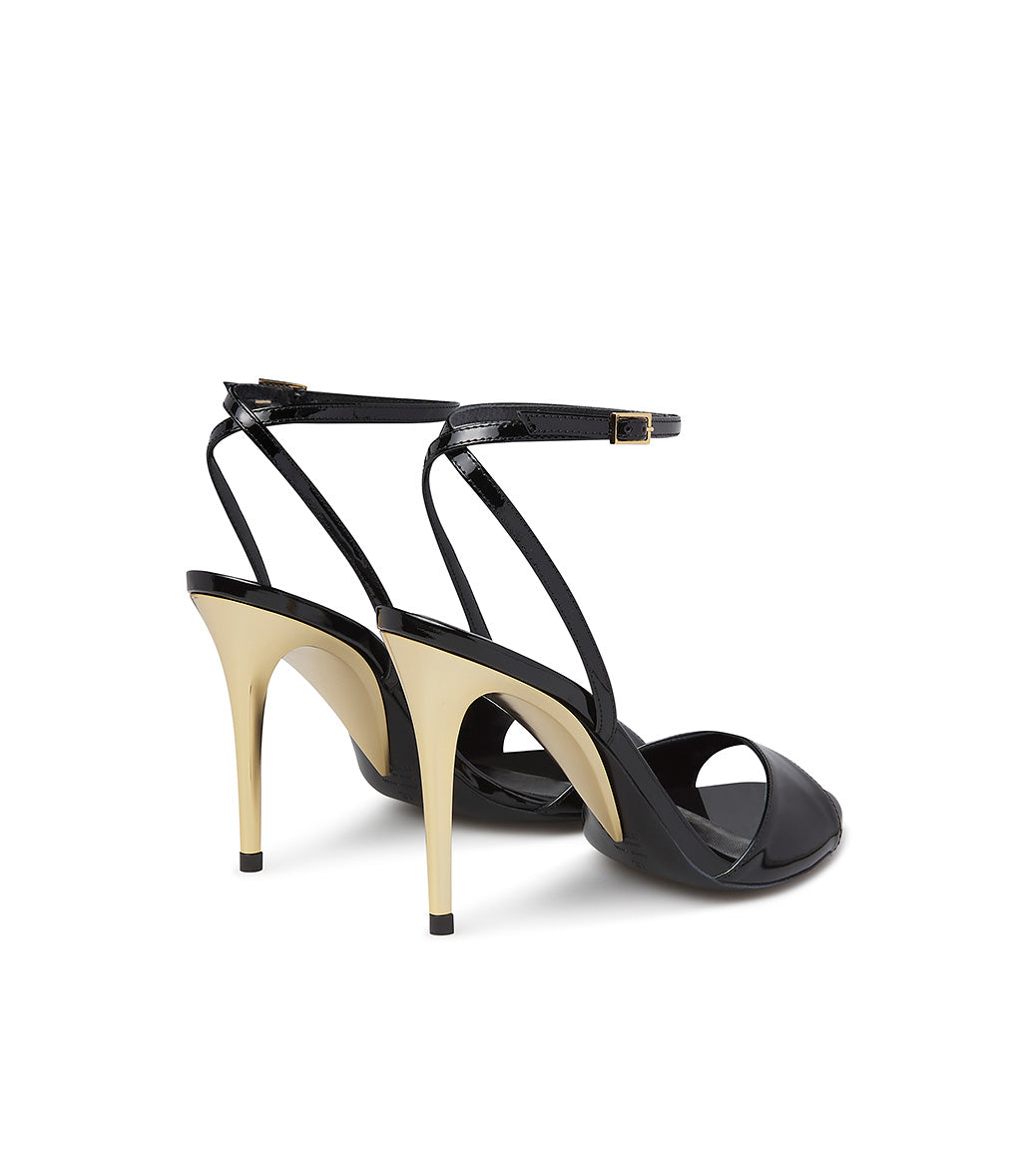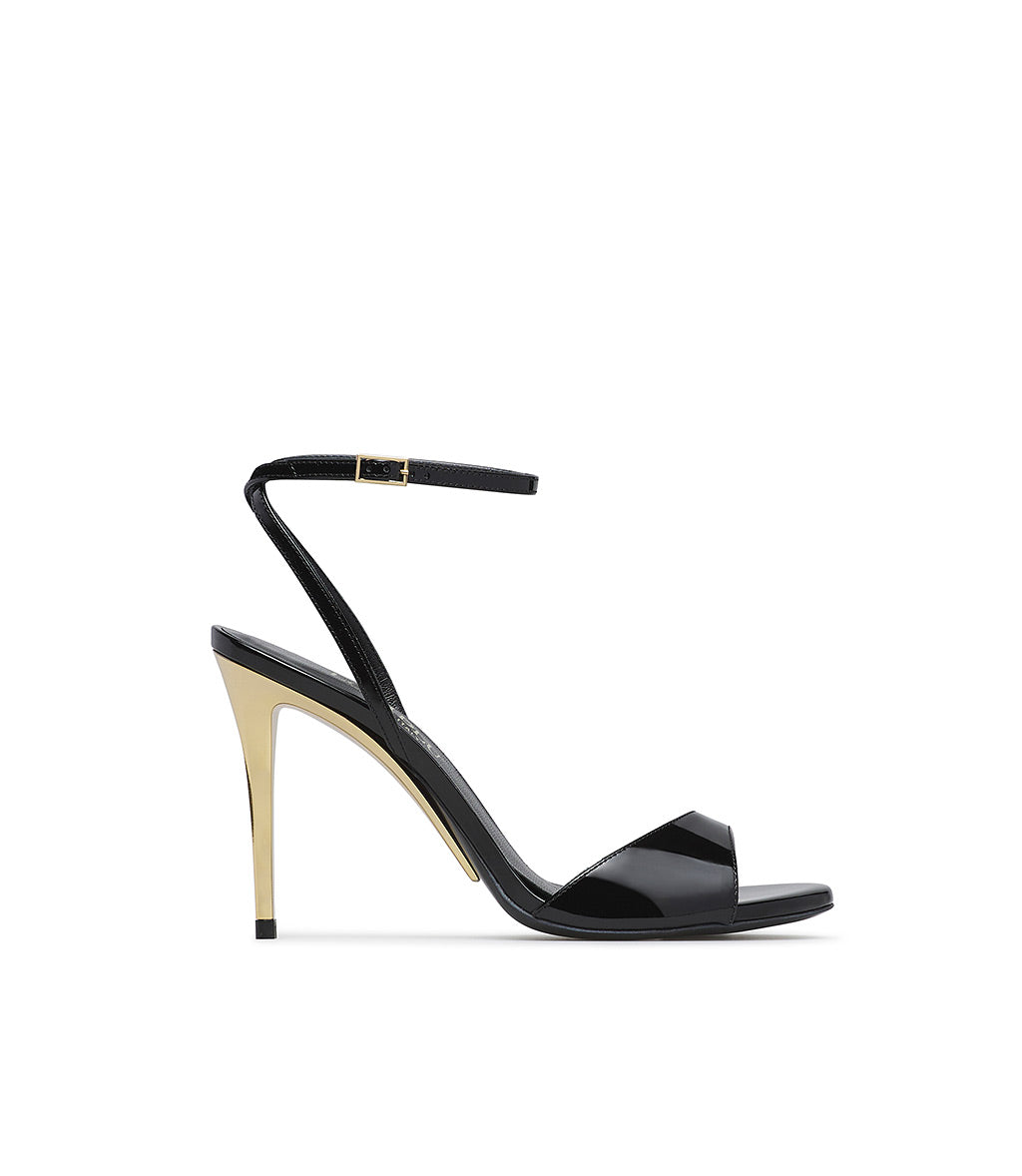 Sandalo in vernice nera con tacco scultura