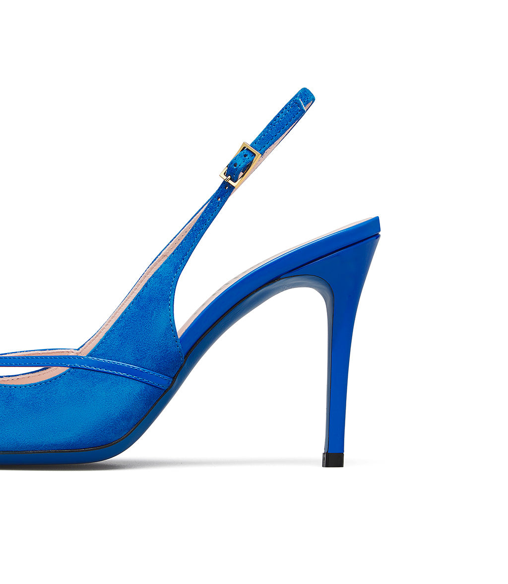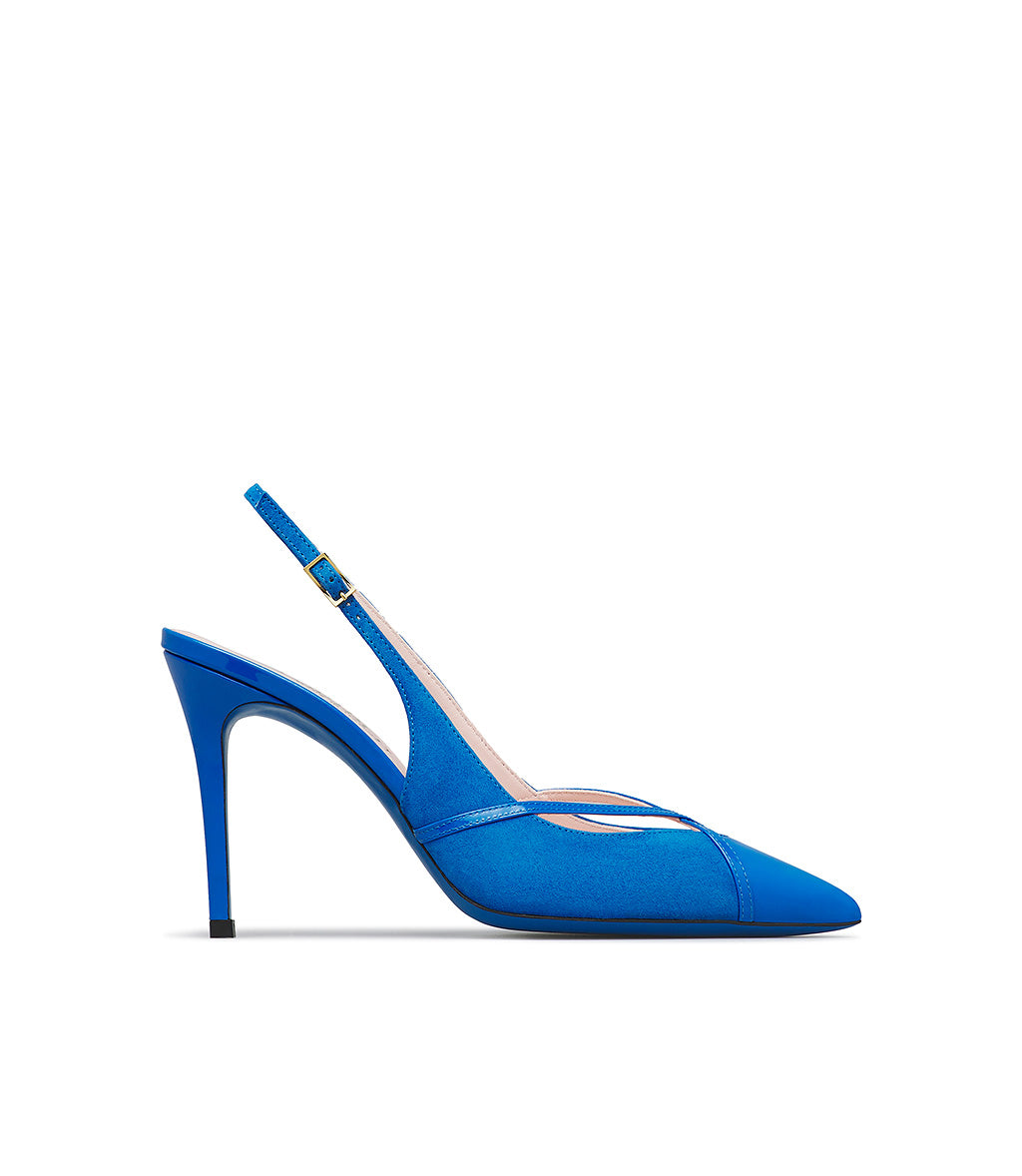 Slingback in camoscio e vernice bluette