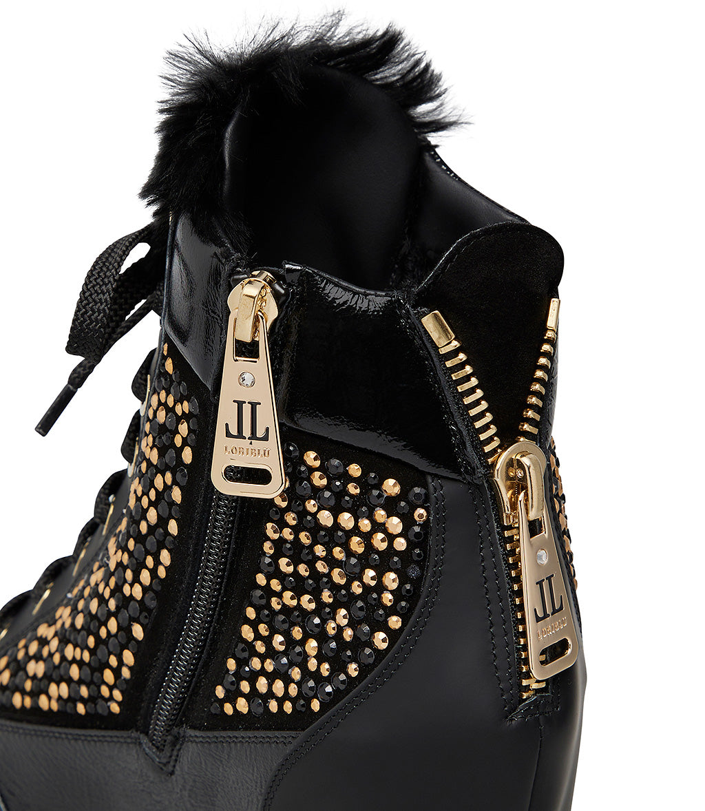 Sneakers nera con zeppa interna e borchie