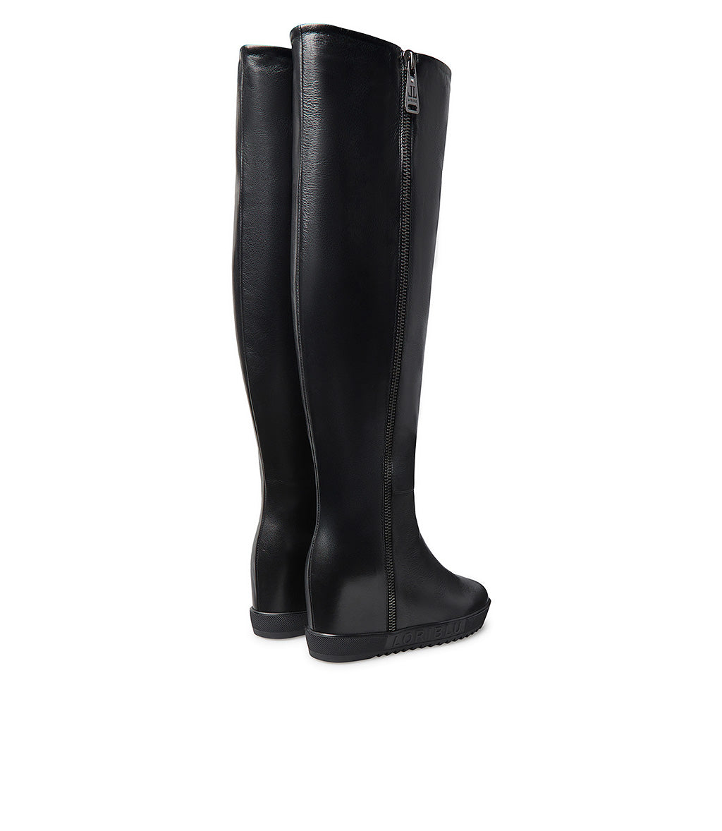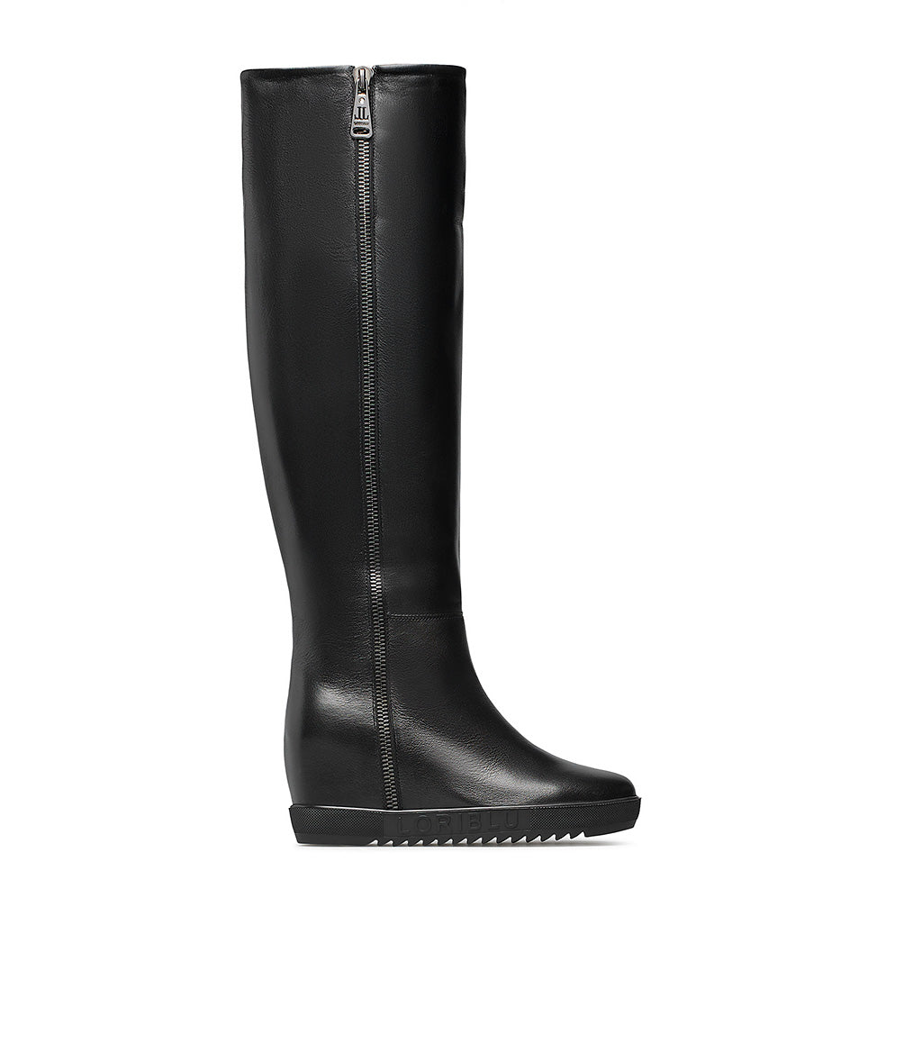 Stivale in nappa nera con zeppa interna