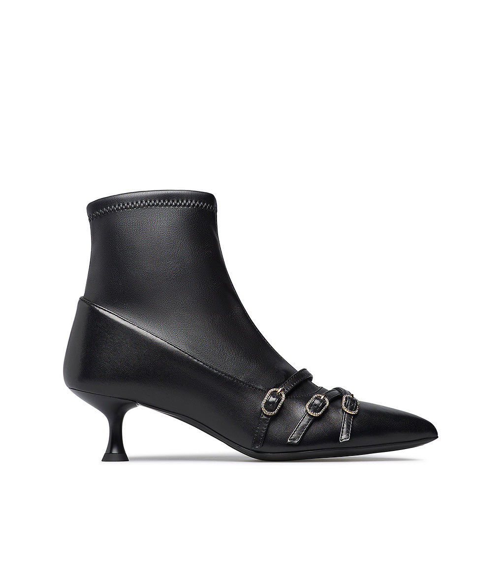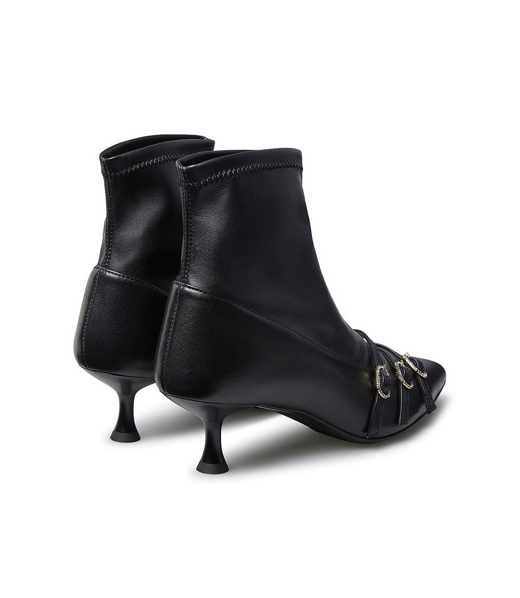 Stivaletto in nappa nera con cinturini