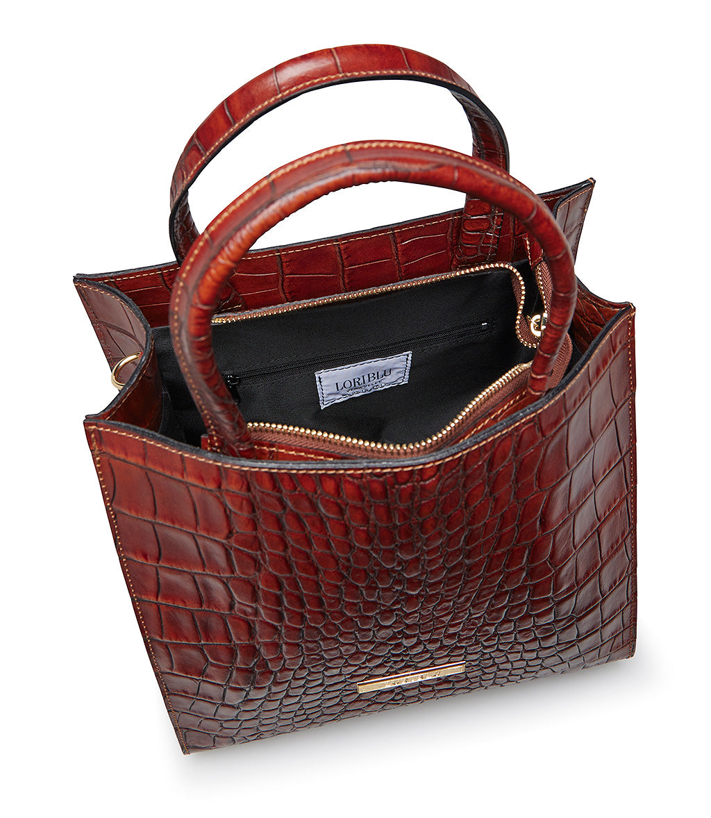 Tote in pelle stampa cocco marrone