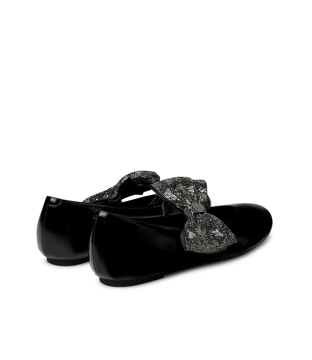 The new 100% made in Italy ballerinas, crafted by our artisans in shiny black leather, are the perfect combination of versatility and comfort. Featuring a comfortable sole and delicate details, they are embellished with a microcrystal bow on the adjustable strap. A symbol of femininity and simplicity, our new ballerinas will win you over.