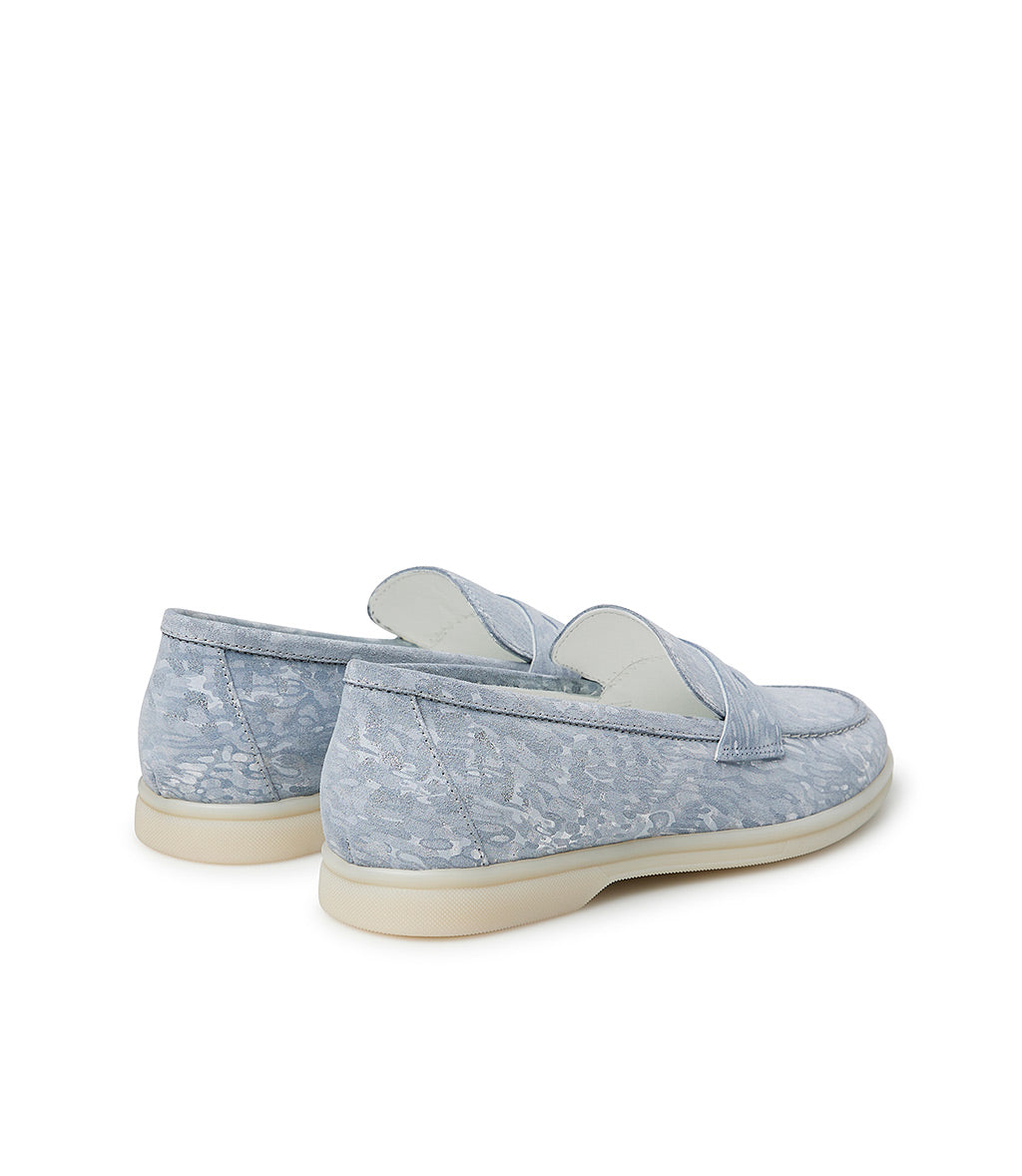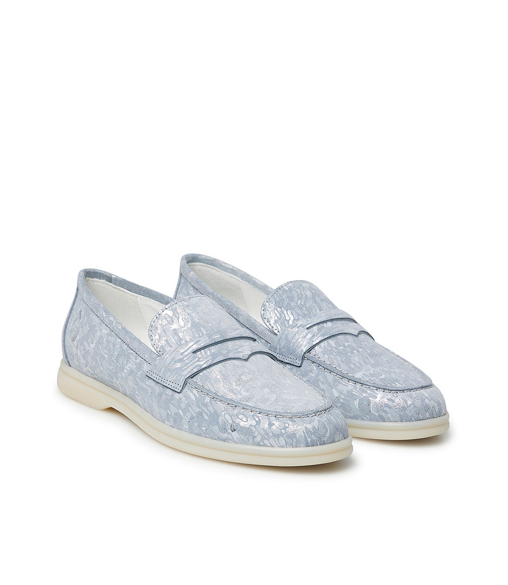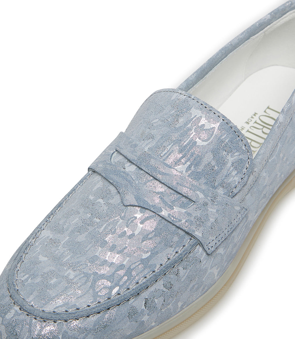 Wisteria and silver embossed suede loafers