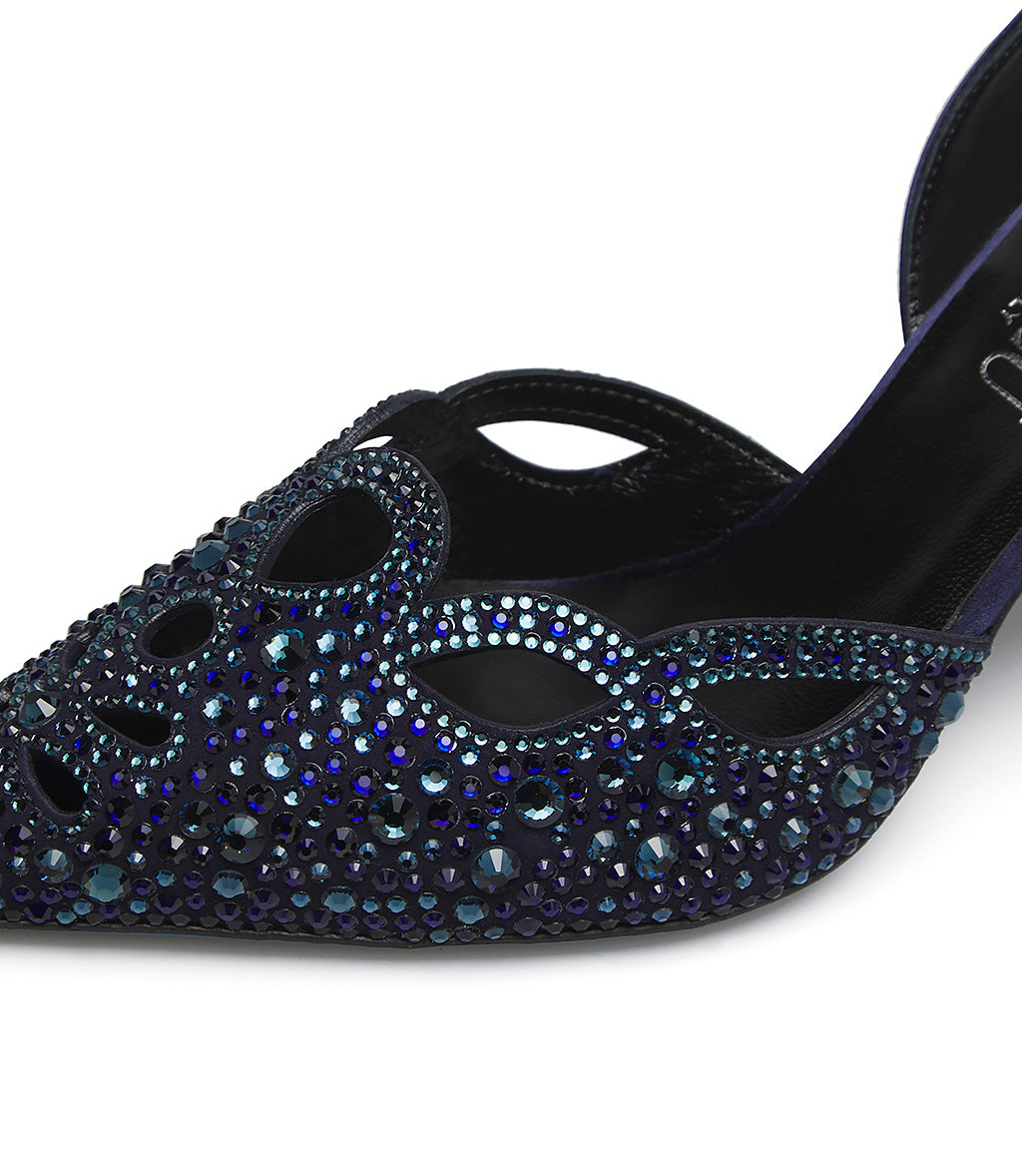 Blue suede jewel skingbacks