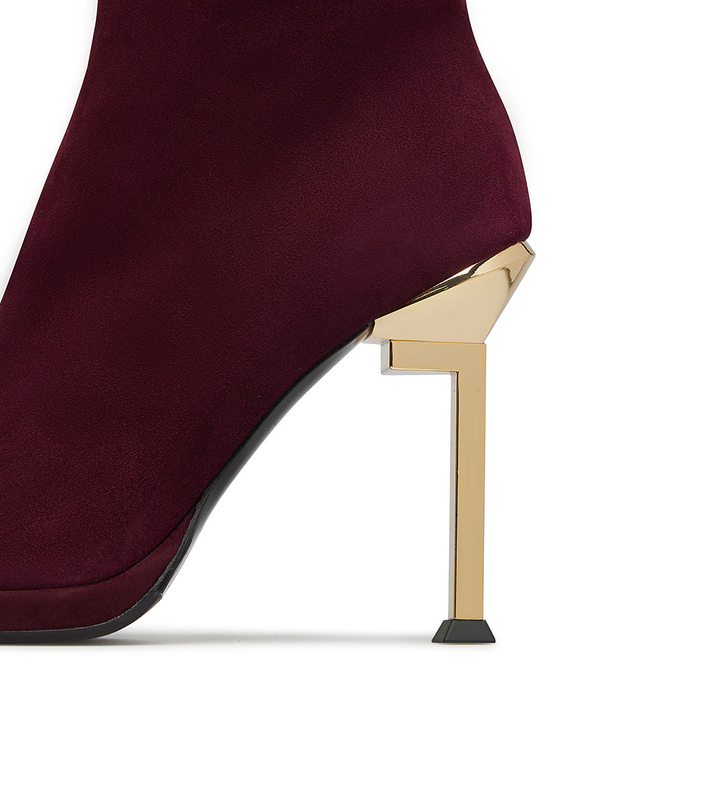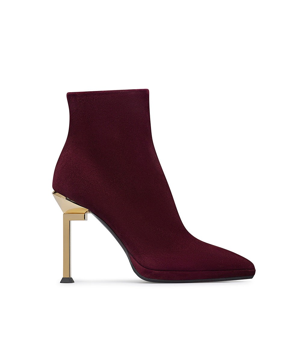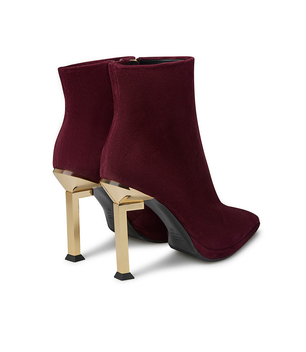 Stivaletto in camoscio bordeaux con tacco a L